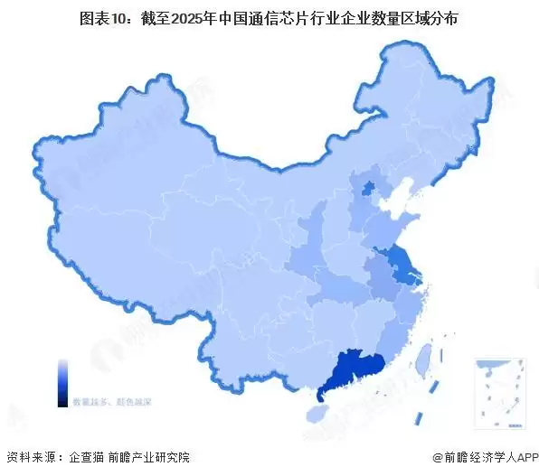 根据中国企业数据库企查猫,目前中国通信芯片注册企业主要集中在广东省,此外江苏省、北京市等也具有不少布局通信芯片业务相关的企业。