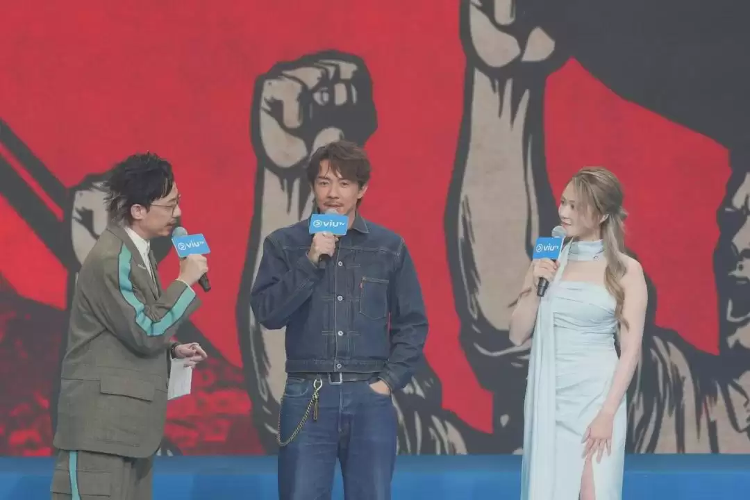《小业主战线》由张继聪和周秀娜主演,当日由强尼同李昭南(右一)担任主持。(facebook@ViuTV)