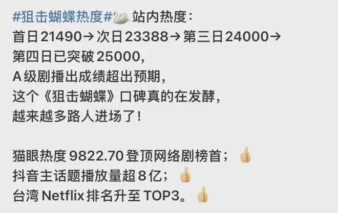 陈妍希新剧《狙击蝴蝶》热播,5天抖音播放量破8亿