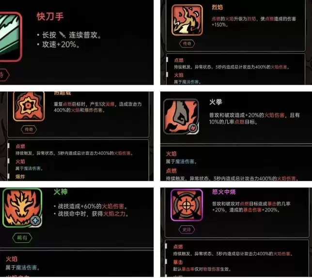 热超载火拳是该流派的基石装备。核心思路是利用火拳持续激活燃烧状态,燃烧再联动热超载实现无缝循环。结合基础功和快刀手技能,可确保热超载频繁触发;烈焰符文则能显著提升热超载的爆发伤害,在应对平行六等高难度关卡时必不可少。