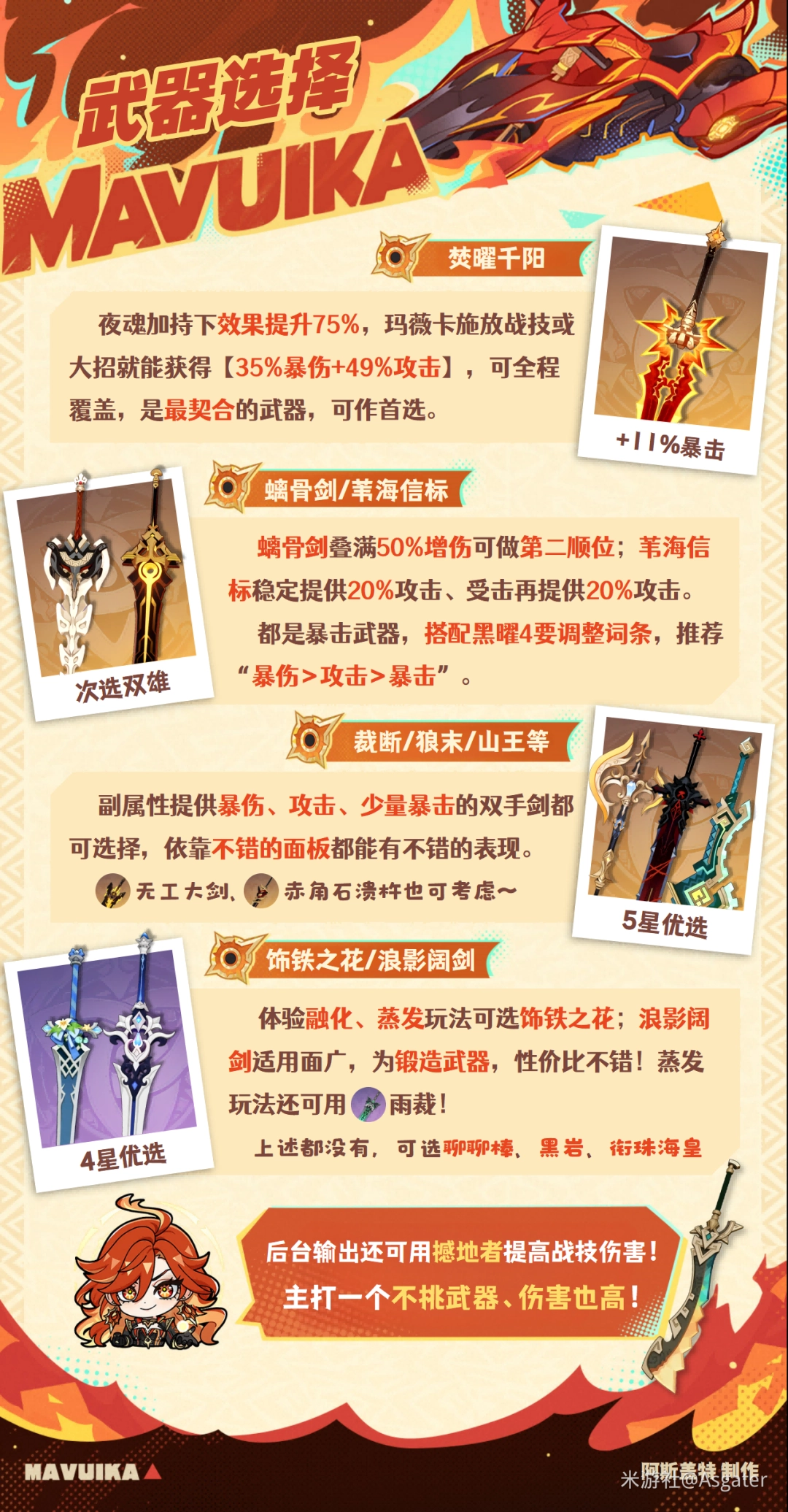 玛薇卡作为「五星火双手剑输出」,无疑是当前火系战力的巅峰代表!她不仅在地图探索中表现出超强的机动性,输出能力也相当出众。随着新版本推出多款新武器与圣遗物,接下来就为大家带来2026年玛薇卡的武器选择推荐。