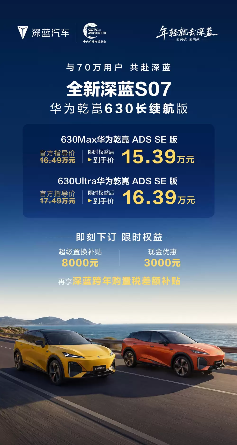 长安深蓝S07华为乾崑630长续航版上市,售15.39万起