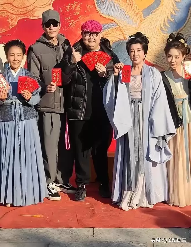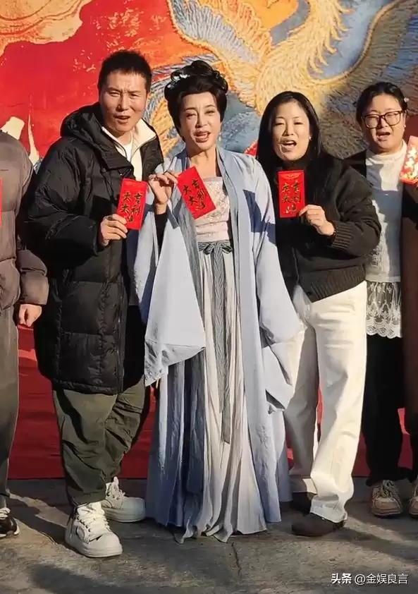 开机仪式上,刘晓庆理所当然地站在了C位,双手叉腰,姿态强硬,完全把周围的年轻演员当成了背景板。