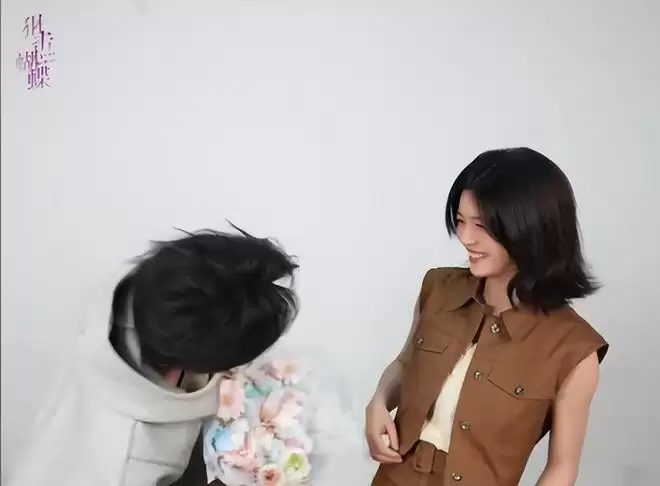 有网友发现,最新账号发出的一段剧宣视频,男主饰演者侧着头给陈妍希送花,陈妍希笑着看他。