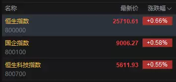 今日港股三大指数集体高开,恒生指数上扬0.66%,报25710.61点;恒生科技指数涨0.55%,国企指数涨幅为0.58%。盘面上,科网股普遍走强,网易、阿里巴巴、快手、哔哩哔哩涨幅均超过1%,腾讯控股亦升1%。苹果概念板块高开,其中蓝思科技大涨超过6%。黄金股延续近期升势,紫金矿业(601899)上涨2%;保险股表现活跃,中国太平涨幅超过1%。