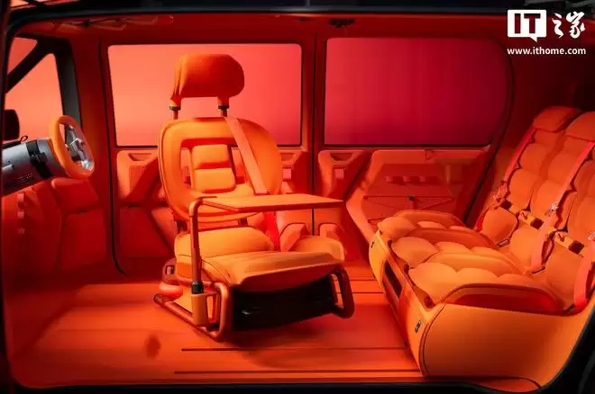 在内饰方面,雪铁龙ELO概念车采用了极简主义的设计理念。前排取消了传统的仪表台设计,取而代之的是布置在前风挡玻璃底部的贯穿式“天际线”屏幕,方向盘则位于中央位置。座椅布局的灵活性是该车的一大亮点,支持1+3式的四座布局以及3+3式的六座布局,驾驶位座椅支持旋转,后排座椅可放平并加装床垫,同时车内还配备了幕布,可随时切换至观影模式。