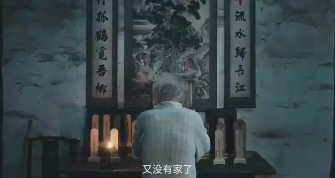太爷念叨着颠倒的诗句“国破山河在,低头思故乡”,看似是错的诗,却道出国破家亡中人民最真切的悲鸣。“家”的隐喻成为牵引全篇的线索。太爷爷的家是“回不去”的金陵城,是一口地道的鸭血粉丝汤,是故去亲人的牌位;莫得闲的家是他用双手打造的一屋一舍和檐下的家人;夏橙的家是怀中的孩子,灶头的热饭;肖衍的家是曾经的炮兵团、兄弟的情谊,是想要"死得不难看"的夙愿。