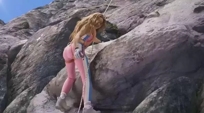 更值得一提的是,拉丁天后夏奇拉在《疯狂动物城2》主题曲《Zoo》的MV中,特意复刻了片中的这一片段。但她的装备与动作,就选择了更接近于大众认知里的自由攀登。