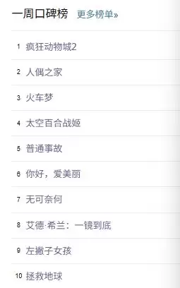 最后,还是例行附上一周豆瓣口碑榜的完整榜单:
