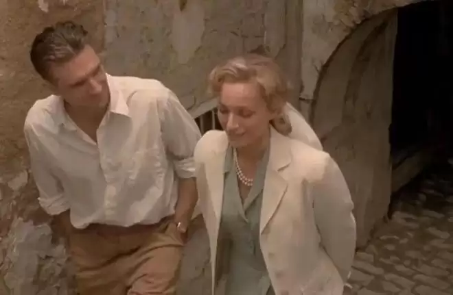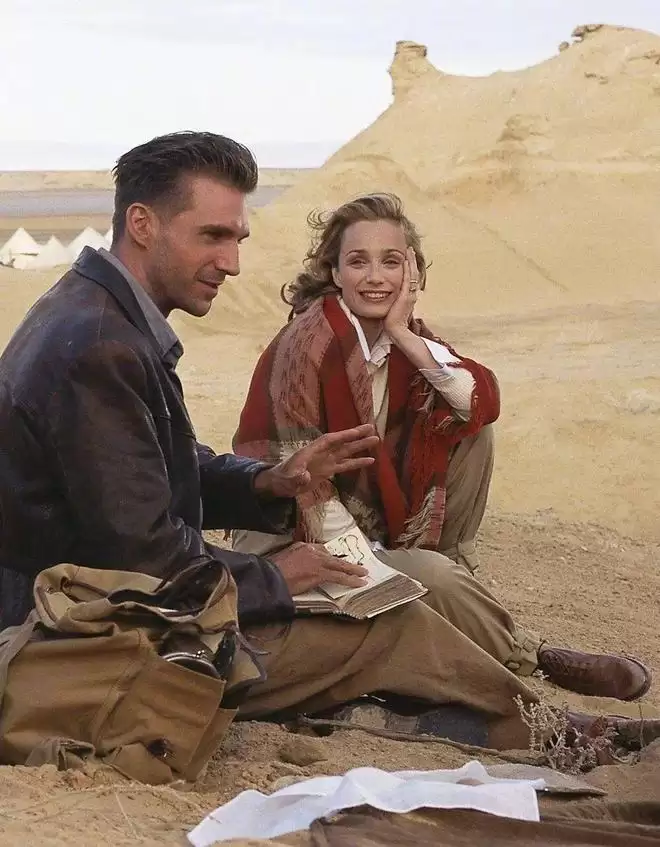 巧的是汉娜找到了一本厚厚的希罗多德的书,发现了书里的图片和手稿,那正是艾玛殊不久前作为国际沙漠勘探协会成员考察时留下的书籍,汉娜每天给他读书,渐渐唤起了匈牙利考古学家的记忆,他和柯顿太太凯瑟琳当时坠入爱河的美好时光又一幕幕闪现。这穿越时空的爱恋,真正成了彼此今生的生死恋情。那个时候艾玛殊年轻英俊风度翩翩,凯瑟琳知性儒雅美丽大方,他们是那样般配,如胶似膝。