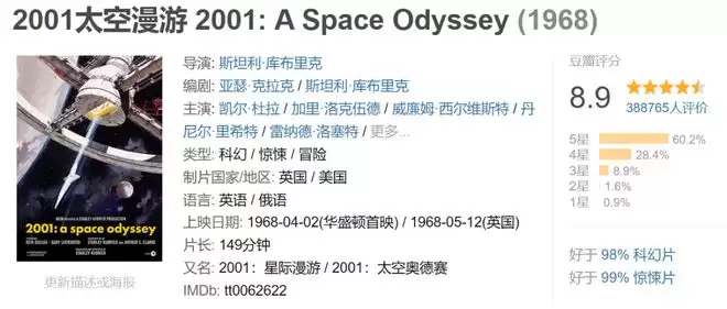 有的电影,你当年看会觉得惊为天人,比如《2001太空漫游》。1968年啊我的天,我们还在背朝黄土面朝天上山下乡,大洋彼岸的人家已经遨游太空,探讨AI自主意识,寻找物种起源了,牛成什么样了?可你放在今天,以当下的眼光把它当做一部新片去看,那种震撼感就会打折扣。