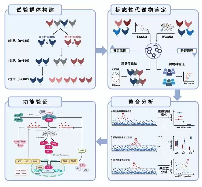 白羽肉鸡是我国主要畜禽品种之一,也是动物源性食品生产的重要支撑。经过长期的遗传选育,白羽肉鸡生长速度和产肉性能得到显著提升。但在其机体动态代谢过程中,代谢物变化与抗病力高低之间的关系尚不明确,抗病性状的遗传基础仍有待系统解析。
