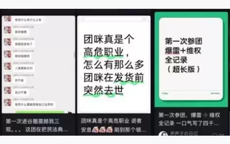 记者在调查中发现,"谷圈"内部发生过多起大型的"代购跑路"事件。其中,一个名为"谷子小卖部"的群主,收取了600多人的货款20多万元,却一年都没有发货。面对代购卷款跑路,受害者们只能曝光账号发避雷帖、封禁代购的支付账号,但很难真正追回损失。这些拼团"买谷"的链接,大多源自"拼团呀"微信小程序。几乎所有的拼团链接都在这里生成,所谓的团长则通过社交媒体"宣团"引流,将散落的爱好者们,聚进一个个微信或QQ群,完成下单。
