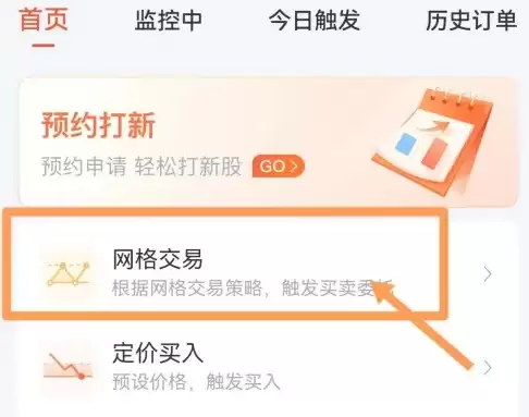 进入后,您会看到如下界面,请在其中找到并点击“网格交易”功能。