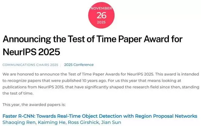 有一项荣誉的颁发显得格外厚重且众望所归 —— 由任少卿、何恺明、Ross Girshick 和孙剑合著的经典论文《Faster R-CNN》,摘得了「时间检验奖」 (Test of Time Award)