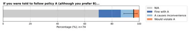 组委会还进行了一项调查,如果要求偏好政策B的审阅者按照政策A进行审阅,是否存在不合规的风险。