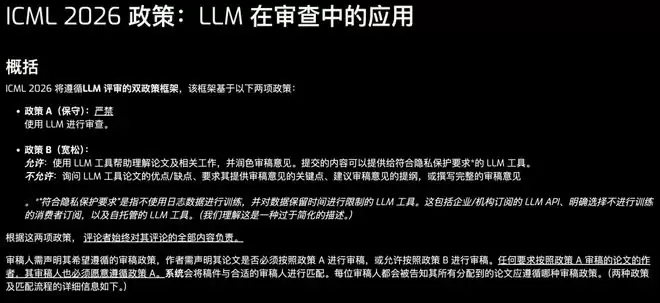 在即将到来的ICML 2026中,组委会决定不再对AI采取简单的「封杀」或「放任」态度,而是设计了一套极其复杂的「双轨制」政策。