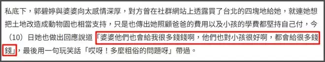 而对于网传郭碧婷独自养家的问题,郭碧婷回应称,向太他们会给她很多钱,对小孩也很好,“都会给很多钱钱”。