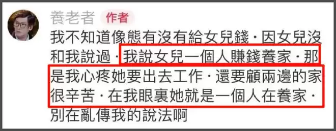 只不过在郭碧婷爸爸眼里,很心疼女儿又要出去工作,还要照顾两边的家,不仅要照顾生病的父亲,孩子也是郭碧婷在带,在郭爸眼里,“她就是一个人在养家”。