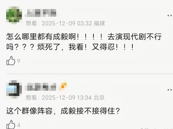 和这群人在一起飙戏,成毅到底能不能接得住,就是个很大的问题了。