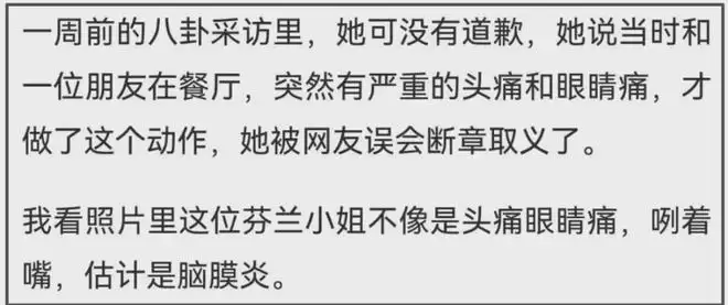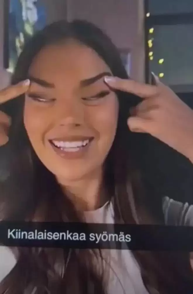 2025年12月,网友发现芬兰小姐Sarah Dzafce竟然在公开场合对着镜头拉眼角,还配上一句“和中国人吃饭”,是非常典型的歧视行为,很快就有人站出来指责Sarah涉嫌歧视。