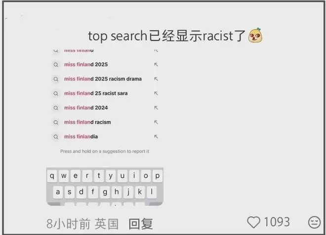 要知道Sarah作为芬兰小姐,可是代表了芬兰参加2025年环球小姐总决赛的,她的行为让网友开始质疑起了芬兰本地对亚裔(特别是中国人)的态度,越来越多网友参与发声,尝试联系芬兰小姐选美比赛主办方,要求Sarah道歉。