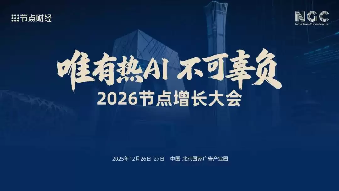 为深入探讨这些关乎未来的核心议题,直面增长新篇与潜在挑战,节点财经将于2025年12月26日至27日,在北京国家广告产业园区,以“唯有热AI,不可辜负”为核心主题,隆重举办「2026节点增长大会」。