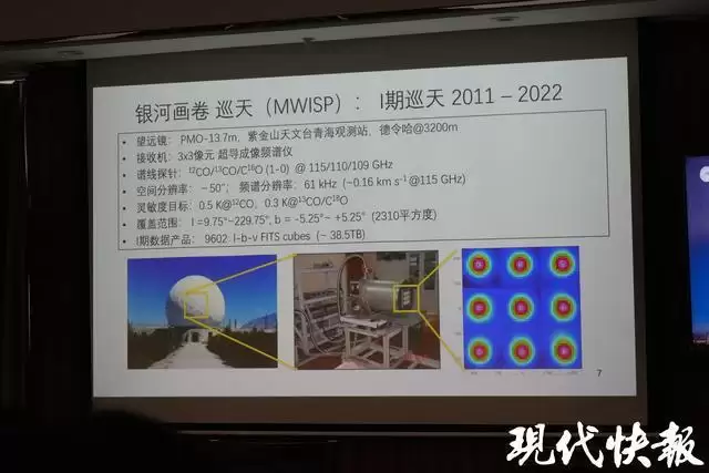该项目是由中国科学院紫金山天文台组织开展的一项大规模毫米波分子谱线巡天计划。“银河画卷”项目首席科学家、紫金山天文台研究员杨戟介绍,该巡天覆盖北天银道面附近2310平方度的天区,通过探测星际一氧化碳分子气体发出的毫米波信号,高精度描绘出银河系分子气体的分布与结构。