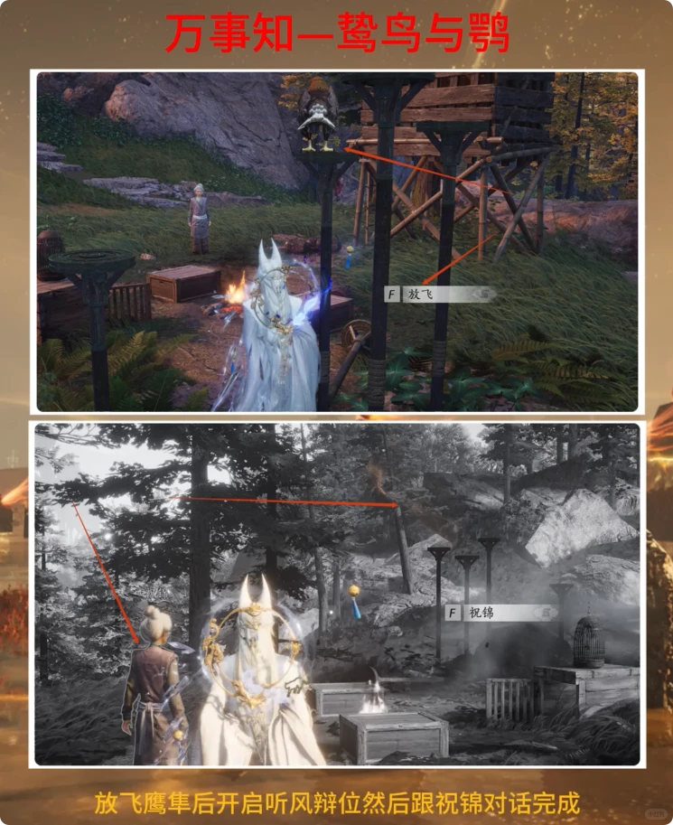 接下来,你需要放飞鹰隼,利用其开启“听风辨位”的能力,最后返回与祝锦对话,即可顺利完成任务。