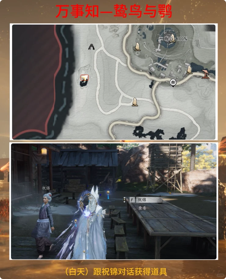 (白天时段)首先与祝锦对话,获取相关任务道具。