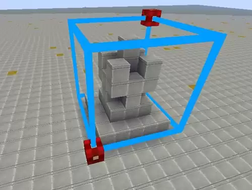 第一步,先用区域复制方块框选目标建筑。记得让复制框的边角与建筑的棱角对齐即可,不需要每个点都精确放置,这样做可以为我们节省不少功夫。