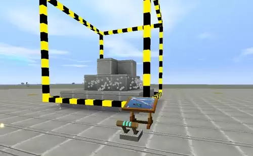 框选完毕后,在区域复制方块旁边放下蓝图工作台,整个装置就会进入施工状态。一旦进入这个状态,就不能再撤销了。如果强行拆除,区域复制方块和蓝图工作台都会一起消失。