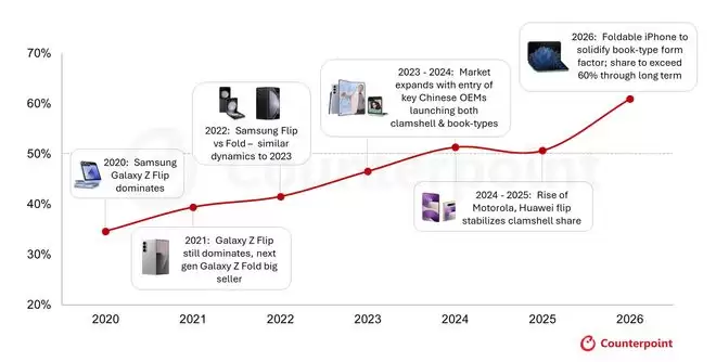 在折叠屏幕形态方面,该机构指出,市场对手机形态的偏好正经历关键转折,左右折叠设计将在2026年进一步巩固其主导地位。