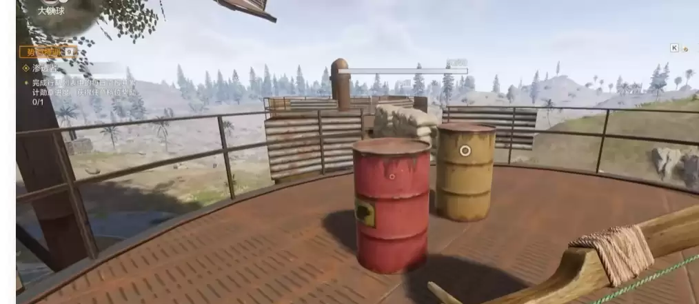 玩家抵达大铁球位置后,会看到铁球旁边有两个巨大的桶。桶边有楼梯,顺着楼梯一直走到桶的上方,可以看到两个红色的桶。直接用弓箭射碎这些红桶,就能获得劣质原油。在这里拿到一份原油后,建议在四周都探索一下,把散落的原油全部收集起来,并找找看附近有没有炼油机,方便对原油进行加工。