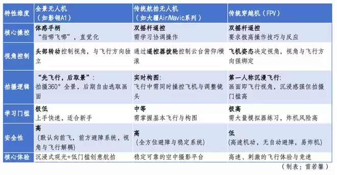 传统无人机市场已高度分化:追求画质与稳定的航拍机、追求沉浸与速度的FPV穿越机。二者分处平行赛道,界限清晰。