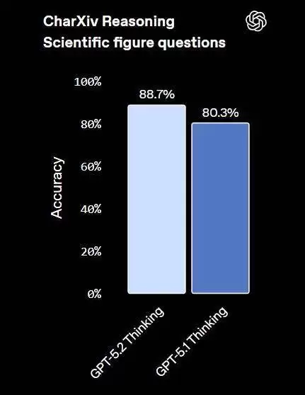 OpenAI 表示:「GPT-5.2 Thinking 是我们要目前最强的视觉模型,在图表推理和软件界面理解方面的错误率几乎降低了一半。」