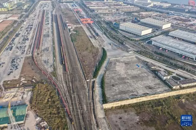 11月29日,在重庆果园港国家物流枢纽铁路货运鱼嘴站商品车物流基地,“重庆造”新能源汽车等待装入一旁的“渝车”专列出海(无人机照片)。 近年来,随着重庆内陆开放综合枢纽建设不断提速,越来越多的“重庆造”汽车沿着出海大通道走向世界。当前,重庆在纯电动、插电式、增程式、氢燃料、换电式等多种技术路线全面布局汽车产业,不断完善的产业链条、持续提升的产品品质、渐趋稳固的供应链体系等,成为支撑“渝车出海”的重要因素。 重庆海关日前公布数据显示,今年前10个月,重庆汽车出口402.2亿元,同比增长13.6%。其中电动汽车出口116.5亿元,同比增长72.1%。 新华社记者 黄伟 摄