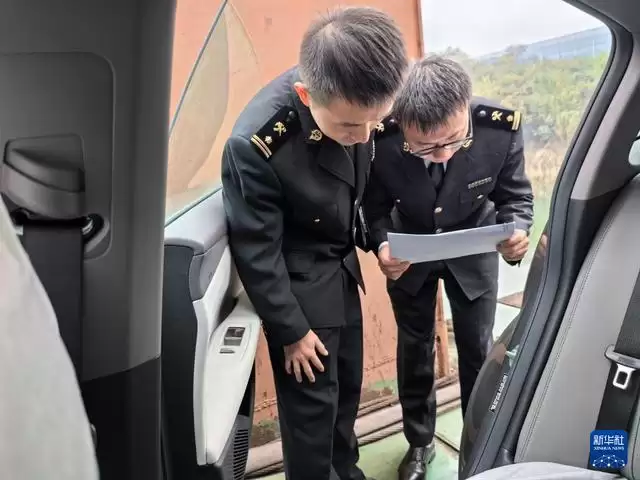 12月5日,在重庆果园港,重庆海关所属重庆港海关关员在核对出口新能源汽车铭牌。 近年来,随着重庆内陆开放综合枢纽建设不断提速,越来越多的“重庆造”汽车沿着出海大通道走向世界。当前,重庆在纯电动、插电式、增程式、氢燃料、换电式等多种技术路线全面布局汽车产业,不断完善的产业链条、持续提升的产品品质、渐趋稳固的供应链体系等,成为支撑“渝车出海”的重要因素。 重庆海关日前公布数据显示,今年前10个月,重庆汽车出口402.2亿元,同比增长13.6%。其中电动汽车出口116.5亿元,同比增长72.1%。 新华社发(罗智文 摄)