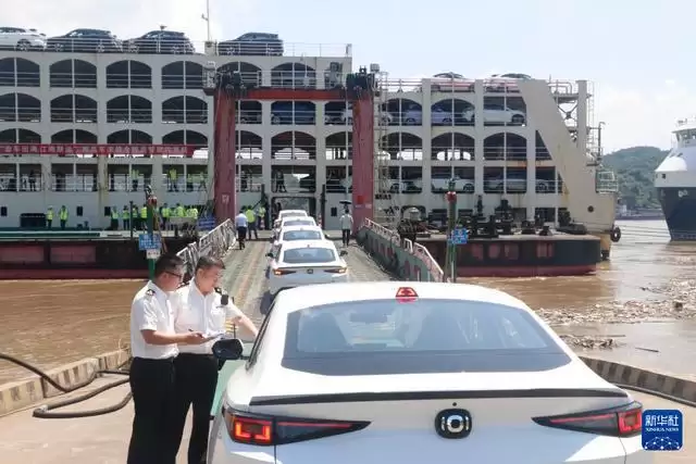 6月27日,在重庆果园港滚装码头,重庆海关所属重庆港海关关员在监管出口整车。 近年来,随着重庆内陆开放综合枢纽建设不断提速,越来越多的“重庆造”汽车沿着出海大通道走向世界。当前,重庆在纯电动、插电式、增程式、氢燃料、换电式等多种技术路线全面布局汽车产业,不断完善的产业链条、持续提升的产品品质、渐趋稳固的供应链体系等,成为支撑“渝车出海”的重要因素。 重庆海关日前公布数据显示,今年前10个月,重庆汽车出口402.2亿元,同比增长13.6%。其中电动汽车出口116.5亿元,同比增长72.1%。 新华社发(罗智文 摄)pagebreak