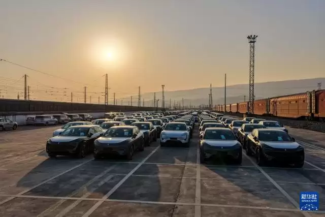 11月29日,在重庆果园港国家物流枢纽铁路货运鱼嘴站商品车物流基地,“重庆造”新能源汽车停放在专列内。 近年来,随着重庆内陆开放综合枢纽建设不断提速,越来越多的“重庆造”汽车沿着出海大通道走向世界。当前,重庆在纯电动、插电式、增程式、氢燃料、换电式等多种技术路线全面布局汽车产业,不断完善的产业链条、持续提升的产品品质、渐趋稳固的供应链体系等,成为支撑“渝车出海”的重要因素。 重庆海关日前公布数据显示,今年前10个月,重庆汽车出口402.2亿元,同比增长13.6%。其中电动汽车出口116.5亿元,同比增长72.1%。 新华社记者 黄伟 摄