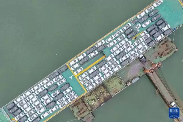 12月5日,在重庆果园港滚装码头,“重庆造”新能源汽车在装船,之后将通过“江海联运”的方式出海(无人机照片)。 近年来,随着重庆内陆开放综合枢纽建设不断提速,越来越多的“重庆造”汽车沿着出海大通道走向世界。当前,重庆在纯电动、插电式、增程式、氢燃料、换电式等多种技术路线全面布局汽车产业,不断完善的产业链条、持续提升的产品品质、渐趋稳固的供应链体系等,成为支撑“渝车出海”的重要因素。 重庆海关日前公布数据显示,今年前10个月,重庆汽车出口402.2亿元,同比增长13.6%。其中电动汽车出口116.5亿元,同比增长72.1%。 新华社记者 黄伟 摄