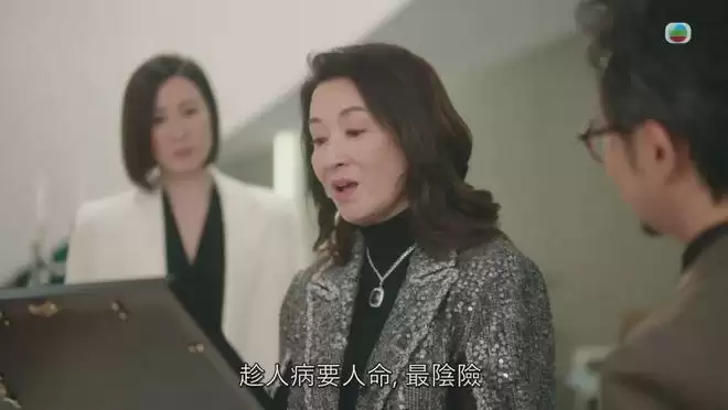 去到上契現場,Kingston先暗寸同場的飛爺(鄧智堅飾)是「契弟」,之後無論方太在台上發表感人演說、或是病情嚴重到為Man姐戴手鏈、甚至簽名如此簡單的動作都完成不到時,Kingston不但全程零關心或同情,更Keep住坐在原位玩手指、揚眉、藐嘴兼冷笑,極盡涼薄。再配以編劇神來之筆,透過方太的口道出「趁人病攞人命最陰濕」,簡單一句便點出昨晚一集重點!