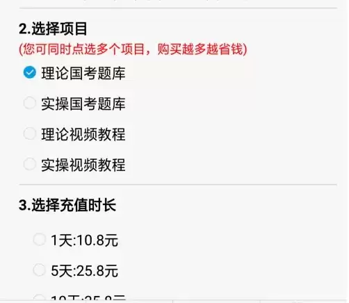 点击进入“账号充值”页面后,接下来就是您的自由选择时间了!您可以根据自己的学习计划,自主选择需要充值的课程类型——是理论课程还是视频课程?同时决定充值的时长,比如30天、90天或更久。