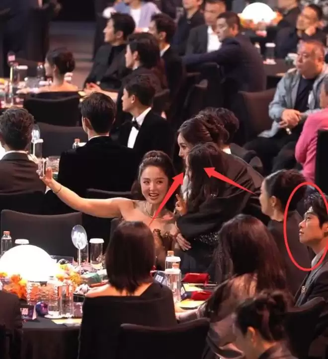 同桌的其他艺人都在关注杨幂跟小酒窝的合照,毕竟每个人都有固定座位,突然来了一位邻桌的大明星,肯定是被关注的。