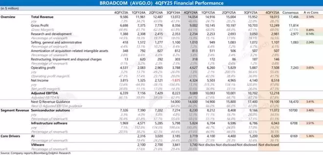 博通 (AVGO.O)北京时间12月12日凌晨,美股盘后发布2025财年第四季度财报(截至2025年10月):
