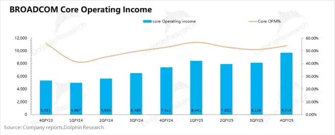 博通BROADCOM (AVGO.O)在2025财年第四季度的经营费用为47.4亿美元,环比略有回落。