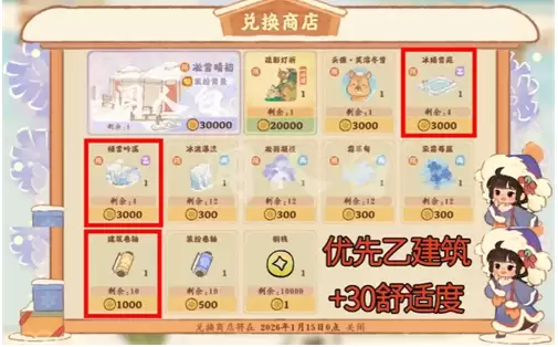 桃源深处有人家的“川雪兆吉”兑换商店推荐来了!活动现已开启,店内限量背景与外观建议零氪玩家二选一;乙、丙级建筑建议至少各换一个以收集图鉴,新甲级卷轴同样推荐优先兑换。头像类物品可根据个人喜好选择。