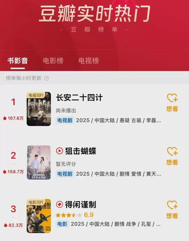 在豆瓣的热门榜单上,这部剧的热度也到达了第二名。