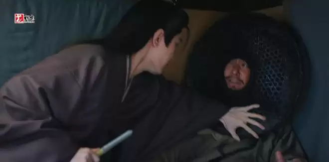 刘子言一边给神秘人(王劲松 饰)洗脚,态度十分恭敬和卑微,很难想象这人是虎贲第一杀手。