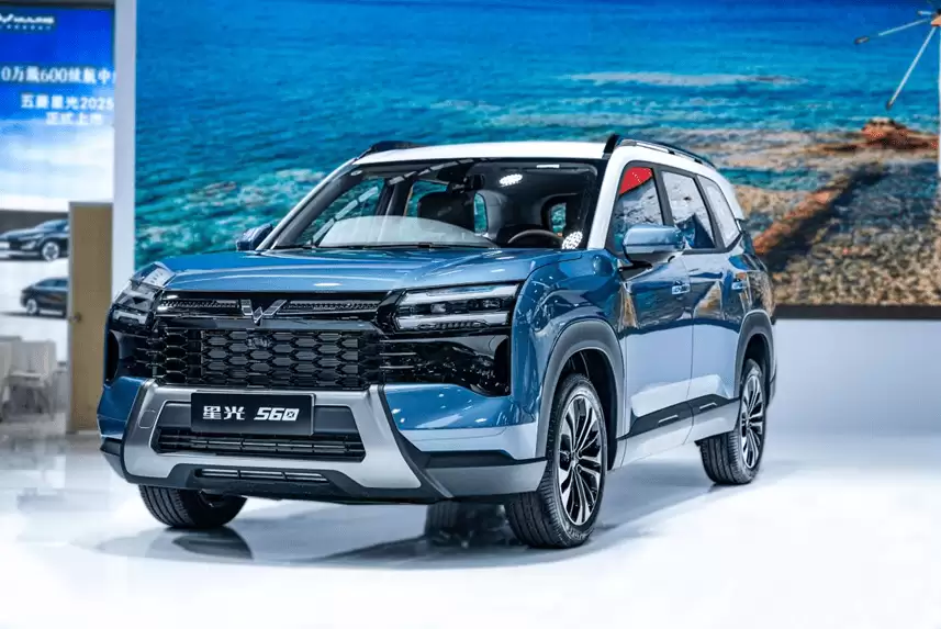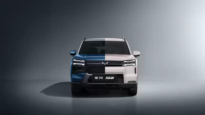 在设计上,五菱星光560采用了硬朗的线条语言,前脸为蜂巢状设计,并配备了粗壮的前保险杠。两侧LED光源的双横线设计,更增添了时尚化的点缀。据悉,根据不同动力版本,前脸设计也存在一些差异:燃油版与插混版采用了黑色网状格栅,搭配棱角分明的前保险杠;纯电版则采用封闭式前脸与贯穿式灯带,彰显其新能源身份。